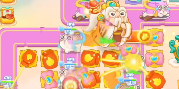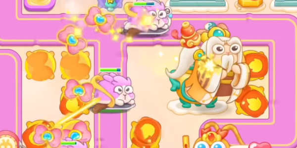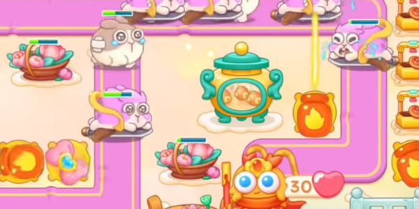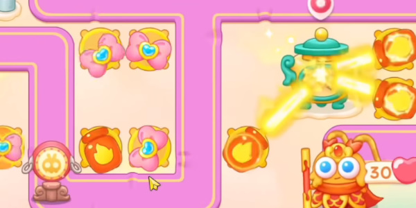 3、接著會出現(xiàn)太上老君,保衛(wèi)此時玩家需在他的蘿卜移動路徑上放置一些毒針來減緩他的速度;