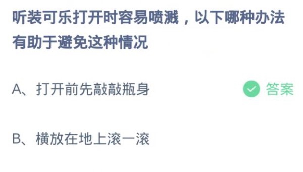 問(wèn)題2-聽裝可樂(lè)打開時(shí)容易噴濺以下哪種辦法有助于避免這種情況?答案