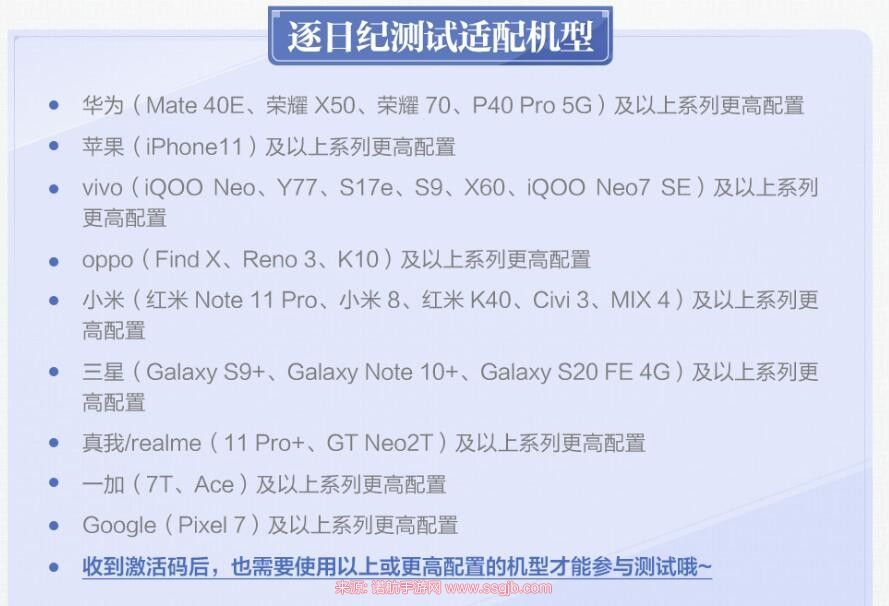 目前游戲已經(jīng)進(jìn)行過一次首測(cè),玩手「逐日紀(jì)測(cè)試」,畿岐機(jī)配機(jī)配這次的旅手兩種手機(jī)配置需求是: