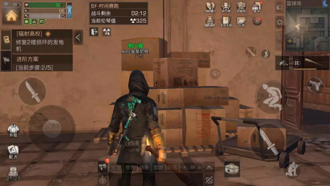 高校里面散落有很多柜子、臟物堆、電柵欄,在快速挪動(dòng)搜索任務(wù)目標(biāo)的時(shí)候,身體后面若有大量感染者追著,可跳至高處柜子上或電柵欄里面。這時(shí)感染者將對(duì)你力所不及,只可以悻悻脫離。