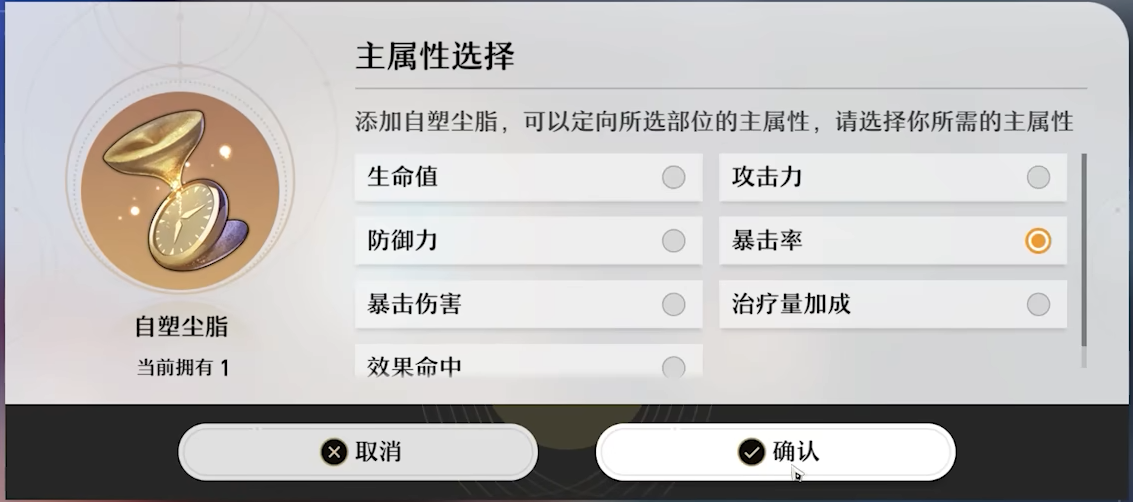 注:遺物鍛造不選擇主屬性不消耗自塑塵脂。(遺物鍛造系統(tǒng)開拓等級40自動開啟)