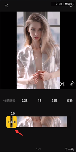 拖動(dòng)黃色選框,片設(shè)選擇長(zhǎng)度為0.5秒,照置秒
