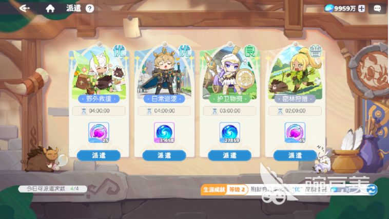 第四個任務(wù)就是派遣任務(wù),這個任務(wù)同樣也是特碼精準(zhǔn)計劃入口每日任務(wù)當(dāng)中的重要一部分,它可以為玩家實現(xiàn)更優(yōu)的掛機收益。在游戲當(dāng)中,可以派遣幻靈來執(zhí)行各類任務(wù),任務(wù)選擇上,盡量選擇優(yōu)品質(zhì)的委托任務(wù)內(nèi)容,能夠獲得更豐富的獎勵,收益也會更高。特碼預(yù)測軟件