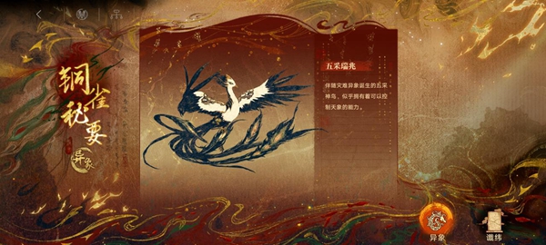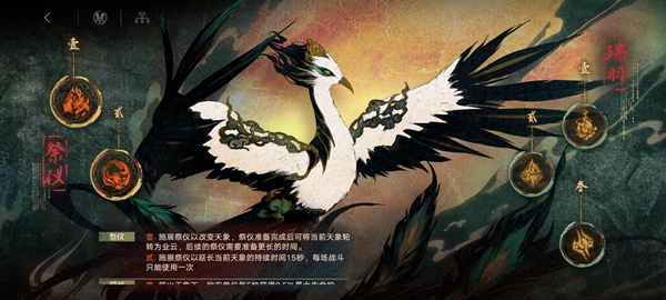 解鎖條件:默認(rèn)開啟跟隨主線進(jìn)度五采神鳥將解鎖不同的【祭儀】和【瑞羽】,局長可依照戰(zhàn)場狀況進(jìn)行對(duì)應(yīng)的配置。