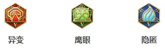 1、銘文順序:紅色異變、綠色鷹眼、藍色隱匿。