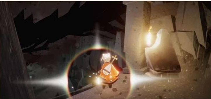 2、光遇朝著左上方飛行,暴風(fēng)確保自身高度高于建筑。金人