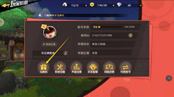 2、接著點擊頭像下面的大全兌換碼選項;