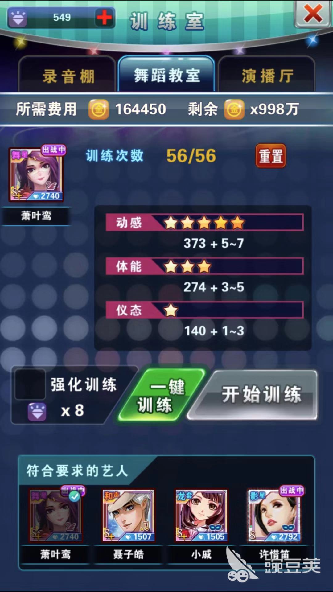 然后可以讓他們穿上具有提升屬性值的管家婆精準(zhǔn)預(yù)測(cè)華衣美服,使他們變得變更大。不過(guò)這一切都建立在巨大的金幣和鉆石上面,大家只需要挑選主力藝人進(jìn)行訓(xùn)練就行,其他的作為陪練即可。