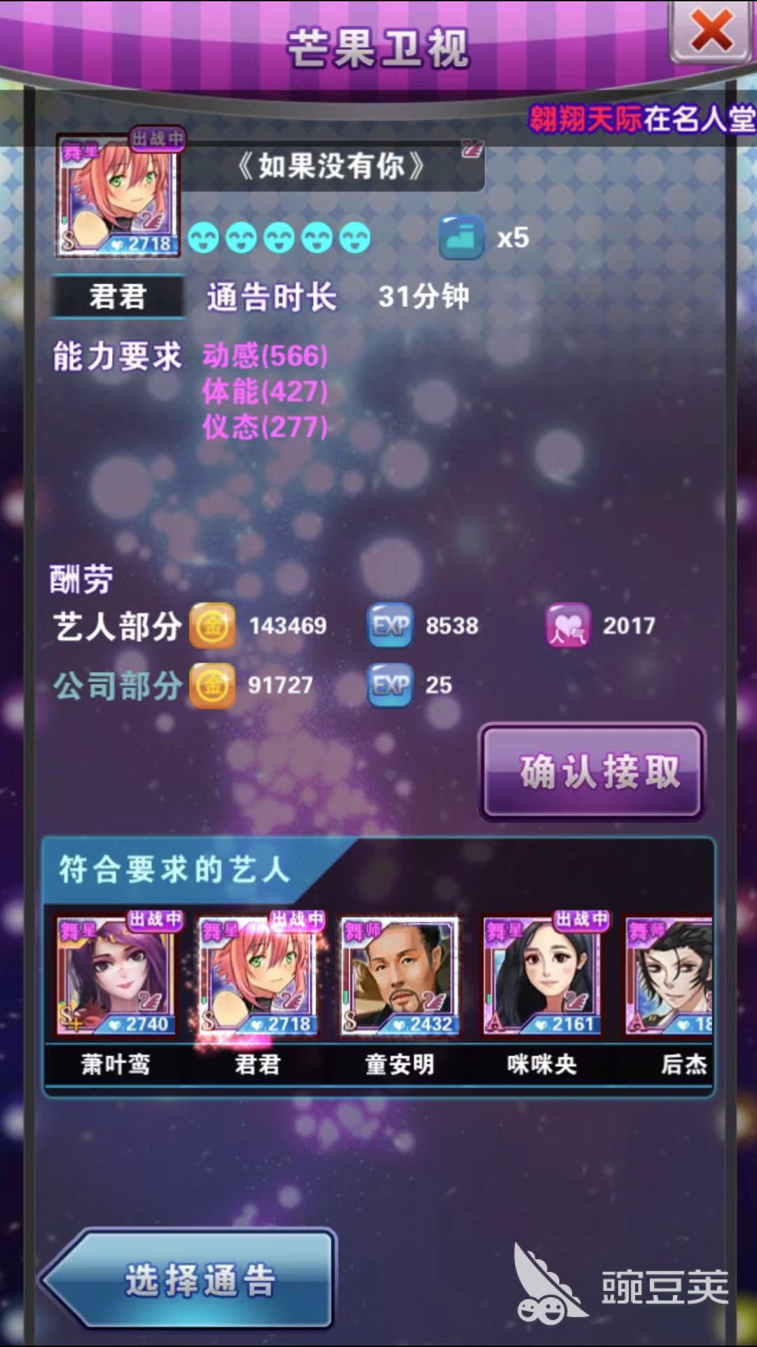 其中五星通告是最賺錢的,大家可以安排自己手上合適的藝人狂接通告,為公司賺錢至于也順便提升他們的職業(yè)等級(jí)。