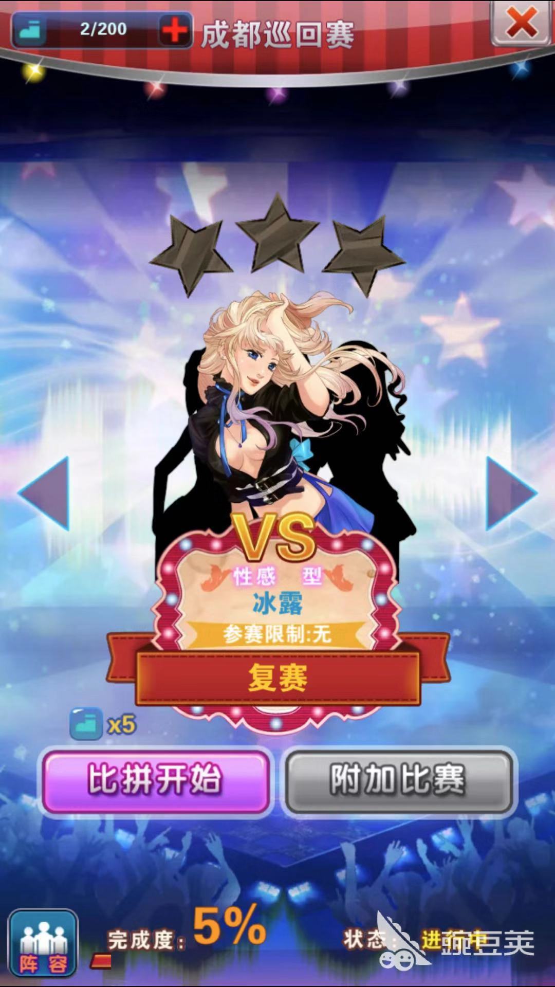 選秀比賽有另外一個(gè)名字叫一站到底,也是組合出戰(zhàn),車輪戰(zhàn)PK掉對(duì)手,贏了就能獲取星光水晶、管家婆中獎(jiǎng)概率金幣或者鉆石。不過(guò)每次失敗后,出戰(zhàn)的藝人就不能再用了。通過(guò)這種比賽的方式,如果實(shí)力超群,你能夠積累足夠多的星光水晶來(lái)兌換道具。