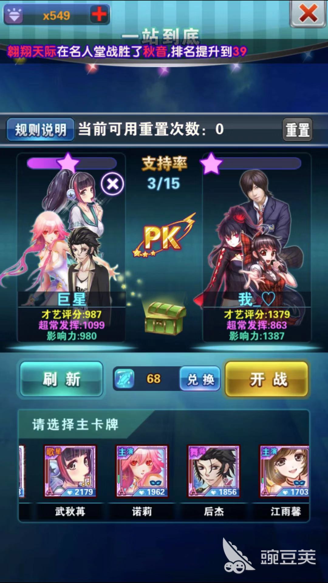 玩家在搭配藝人的時(shí)候也是一種考驗(yàn),每個(gè)藝人只有搭配合適的隊(duì)友才能提高整體的三維,而且通過(guò)比賽能夠看清自己的實(shí)力。