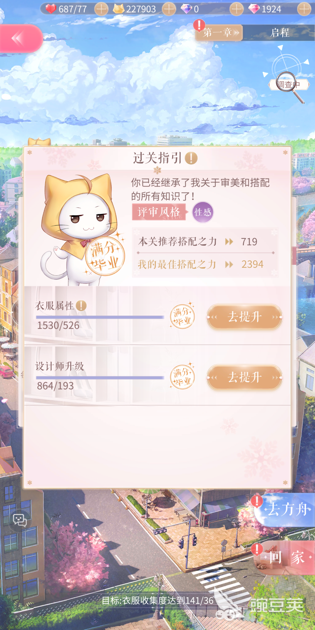 在1-7左上角的導師過關指引中,玩家可以查看大喵給的閃耀管家婆價格過關建議。由于設計師之間的暖暖戰(zhàn)斗通常是比拼搭配之力,而想要提升搭配之力,決戰(zhàn)必須獲得更稀有的導師服裝或者進行設計師升級。