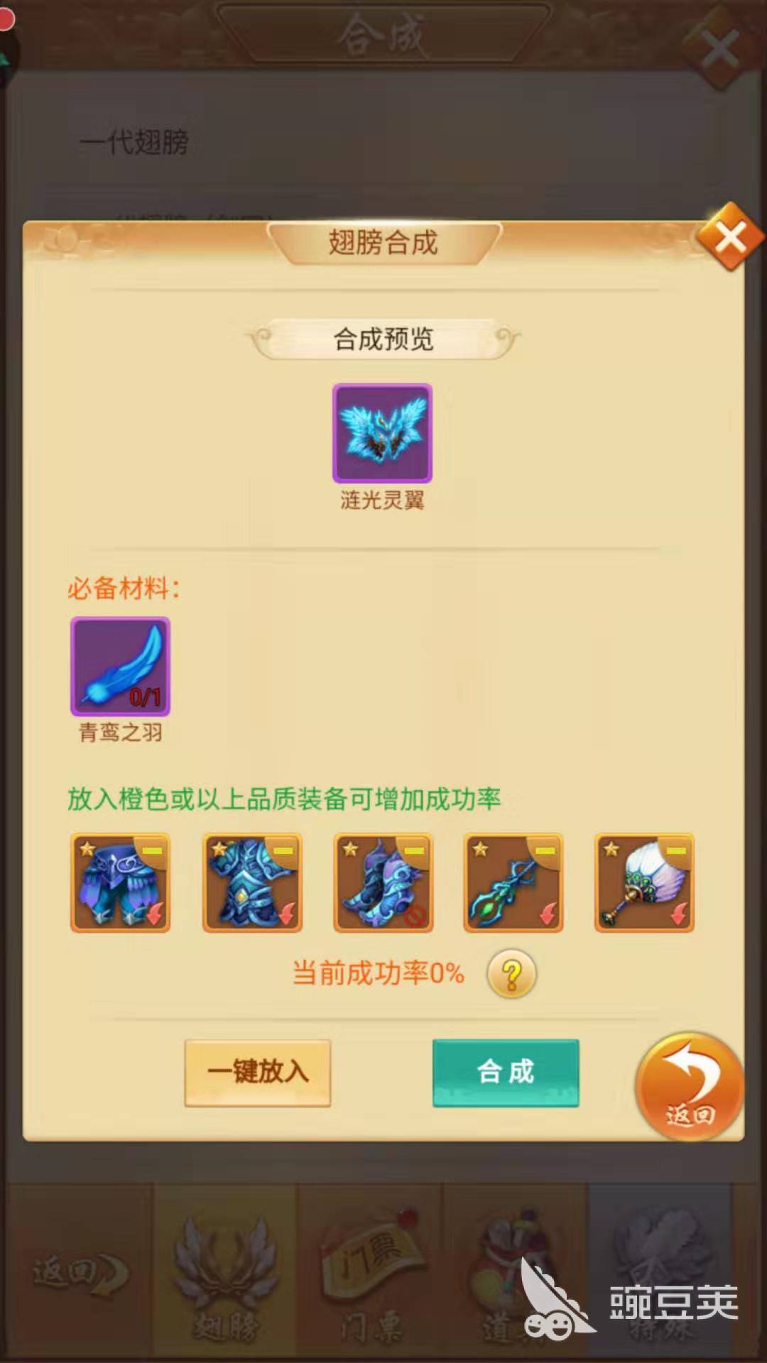 其次是裝備,游戲初玩家們通過日常刷怪很容易得到八大基本裝備,進(jìn)階裝備的獲取需要另尋途徑。第一是翅膀,分為三代,7777788888與王中王系列一代翅膀需要用紫品材料合成,二代和三代則要用到更高級的橙品和紅品材料,合成率也不是百分之百,還得用橙色以上的裝備獻(xiàn)祭才能提高合成率。
