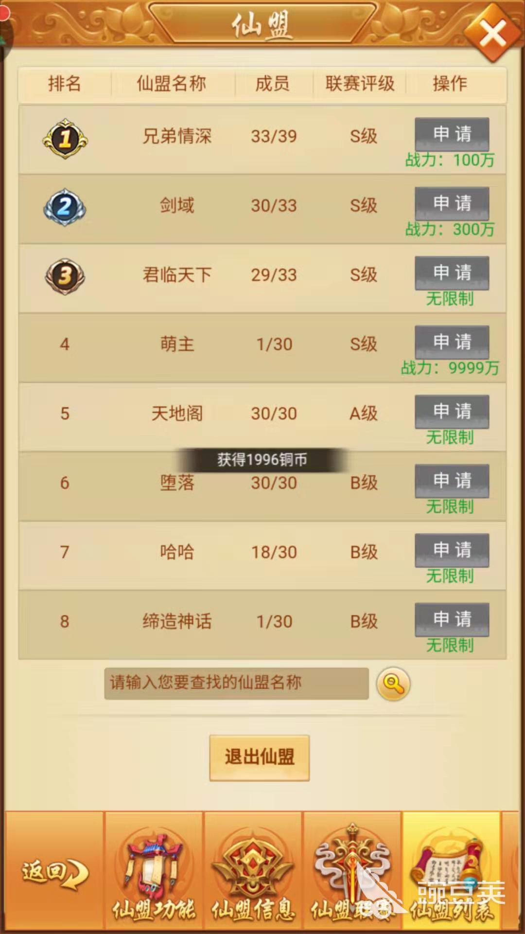 加入一個(gè)好的澳門管家婆7777788888仙盟可以讓玩家們在游戲中的發(fā)展順風(fēng)順?biāo)?,不過像那些評級為s級的仙盟都是有戰(zhàn)力要求的,最低也要100萬戰(zhàn)力,咱們也可退而求其次,選擇a級的仙盟。玩家們對仙盟的貢獻(xiàn)值可以到仙盟商城換取想要的物品,還有各種仙盟聯(lián)賽,排名靠前的都是有獎(jiǎng)勵(lì)的。