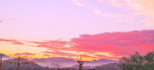 空中的預(yù)示塵埃、水汽等雜質(zhì)越多,早晨著天色彩越濃。出現(xiàn)朝霞